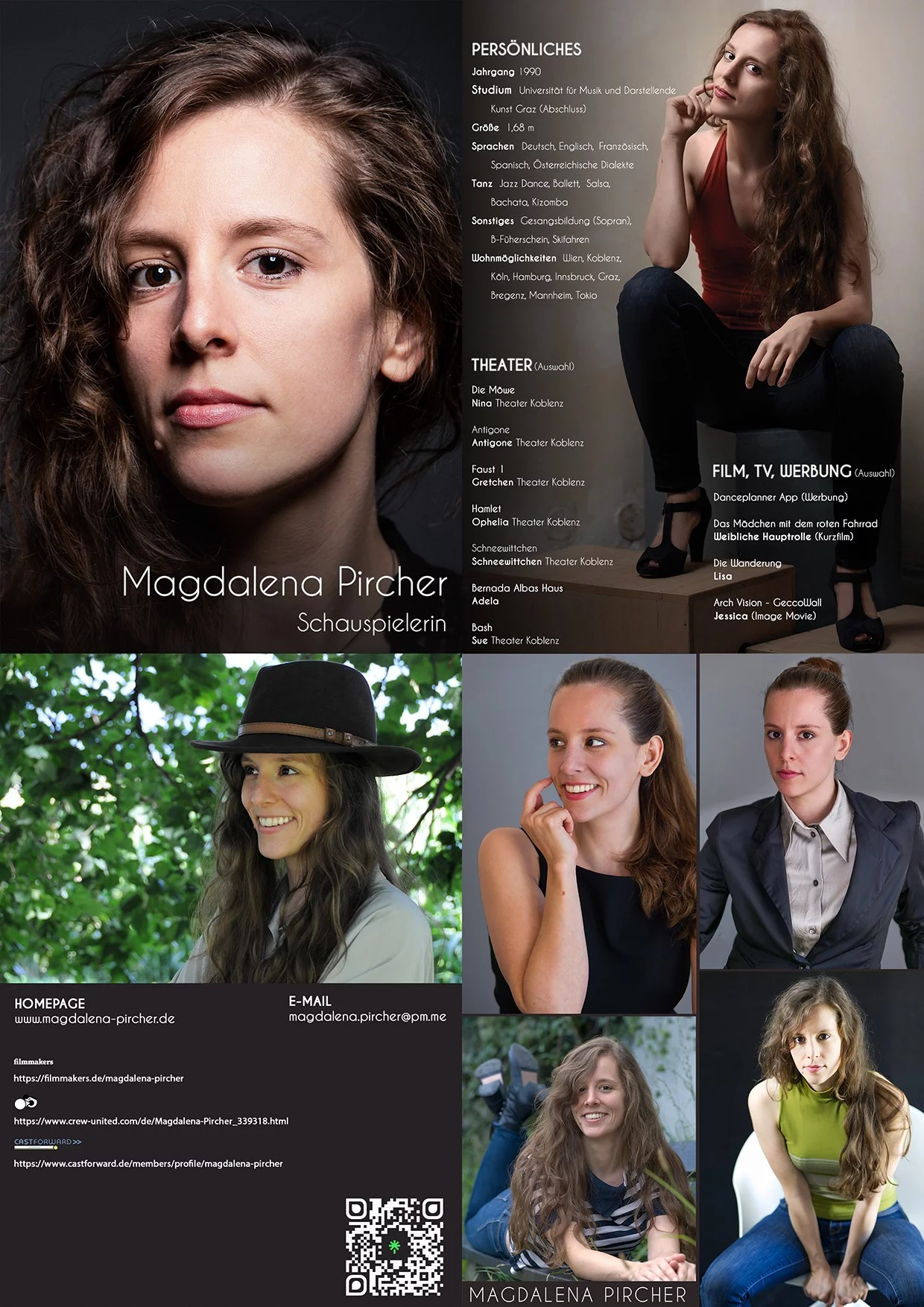 Hier finden Sie Angaben zur Biographie der Schauspielerin, sowie ihre SedCard und ihre Vita als Download.